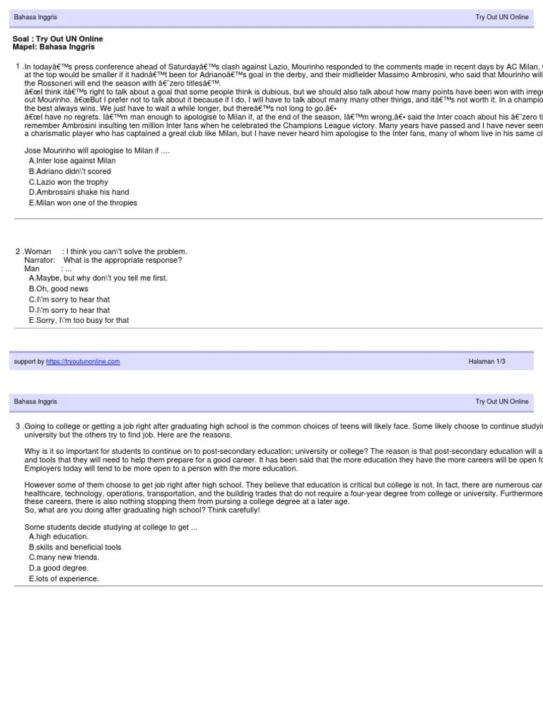 Try Out Bahasa Inggris / Bahasa Inggris Try Out 2 Pdf Document - Mulai latihan tryout bahasa inggris kelas 7 try out 1.. Untuk persiapan menghadapi pelaksanaan ujian nasional (un) smp tahun 2018, . Jangan lupa di halaman terakhir ada klik kirim (submit) . Home · about us · pendaftaran. Silahkan scrol up ke atas jika ada halaman kosong. Soal try out ujian nasional un bahasa inggris smp tahun 2020 ini untuk membantu belajar peserta didik dalam menghadapi ujian nasional tahun .
